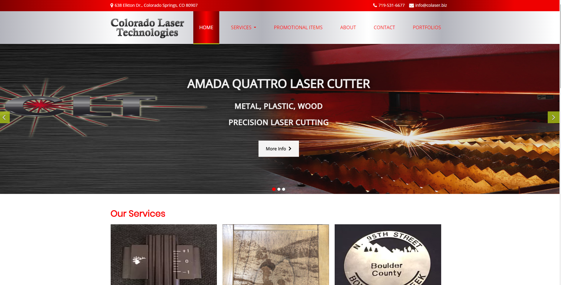 This web design for Colorado Laser Technologies is an example of WYSIWYG's industrial website catalogs.