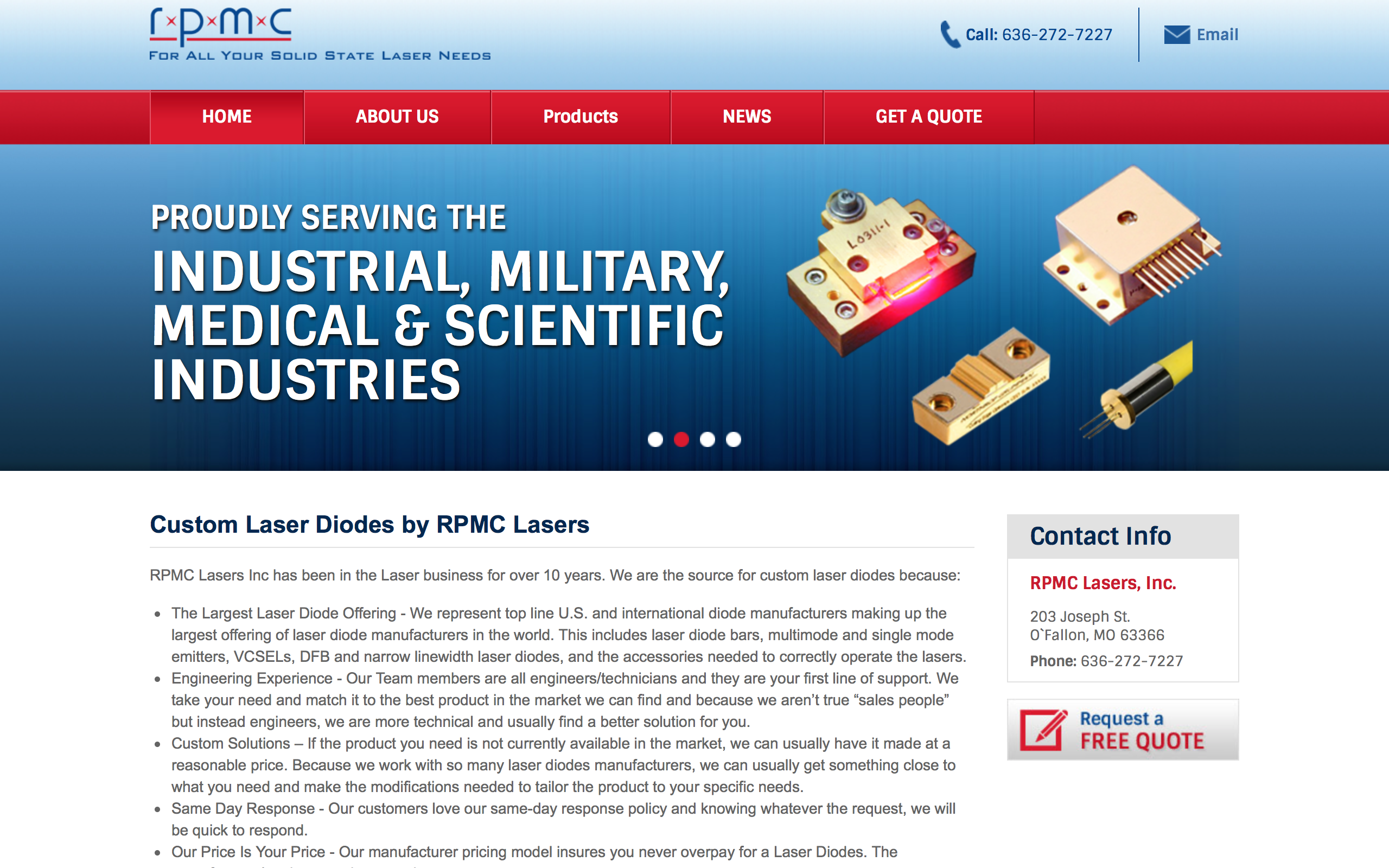 The customlaserdiode.com site was built on WYSIWYG’s SEO platform with the sole intent of driving more traffic to the main company site: RPMC Lasers.